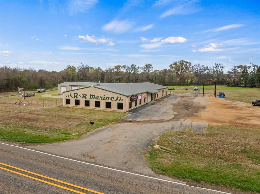 Excellent commercial opportunity in a high-visibility location just outside Pittsburg, Texas! This offering includes the former R & R Marine business along with the land and improvements, providing a great opportunity for a new or expanding business. Situated on almost 6 acres, the property features a 12,600 square foot commercial building built in 2003 designed for retail, service, and warehouse functionality. The facility offers expansive showroom space, office areas, service bays, and ample storage, making it well suited for marine sales, service operations, equipment sales, or a variety of other commercial uses. The facility offers expansive showroom space, office areas, service bays, and ample storage, making it well suited for marine sales, service operations, or other commercial uses. The building features concrete flooring, central HVAC, aluminum siding construction, and large work areas with excellent access for equipment and inventory. The property includes a large parking lot with convenient access from Loop 179, allowing excellent visibility and accessibility for customers and deliveries. This is a rare opportunity to purchase a successful business along with the real estate, land, and improvements, offering immediate operational potential with room to grow.