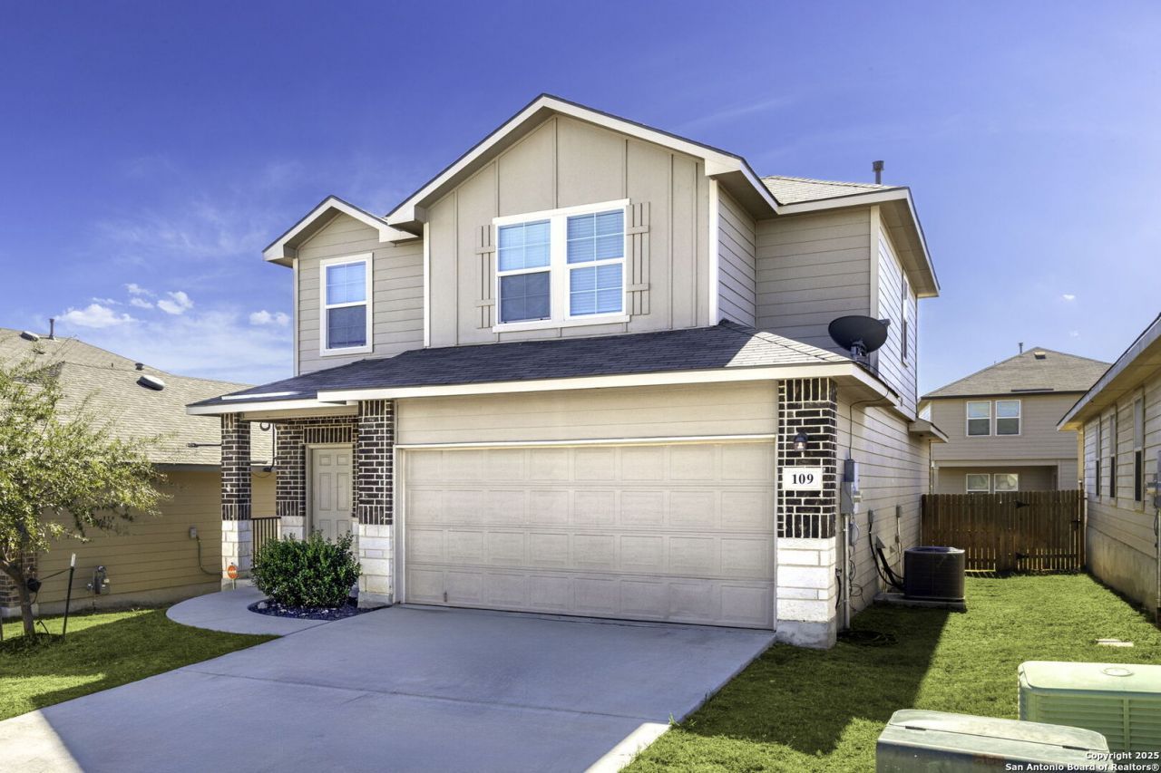 Welcome to 109 Hogans Aly! This beautiful move-in ready 3-bedroom, 2.5-bath home with 1,982 sq ft offers a spacious two-story layout designed for comfortable living and entertaining. The open-concept floor plan features a large living area that flows into the kitchen with granite countertops, stainless steel appliances, and stylish wood-look vinyl flooring. The primary suite provides a relaxing retreat with a walk-in closet and a private bath featuring a walk-in shower. Downstairs has been refreshed with new paint, and the primary bedroom includes brand-new carpet. Step outside to enjoy the fenced backyard and covered patio, perfect for relaxing evenings or weekend gatherings. Conveniently located just minutes from HEB, Walmart, restaurants, and shopping, this home combines comfort, style, and everyday convenience.