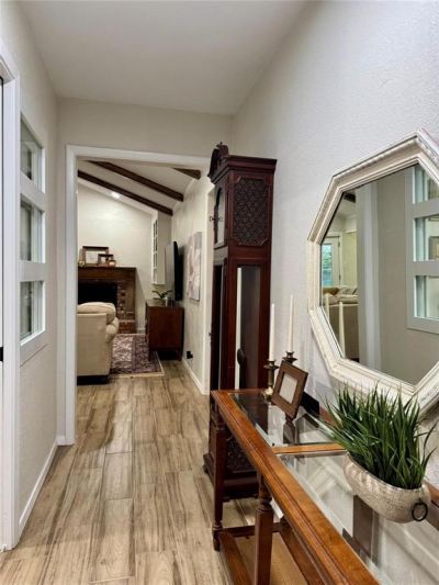 .39 Acre Lot and a SHE-SHED in back. This inviting home offers both formal and informal areas, porch & patio, a wood burning fireplace and split bedrooms. At the center is an intuitively designed, kitchen featuring a Carrera Marble backsplash and marbled quartz countertops. The formal area functions very well as a large home office. The custom glass panel pocket doors and glass panel barn door are perfect for making the space a little quieter when working. The mudroom-laundry room wins for best supporting space in a home! Located just off the kitchen, it features 2 closets, (a pantry & a multipurpose), a full bank of upper cabinets, and freezer space. It's not a glamorous job, but it does it well! Mechanical updates include: HVAC & duct work, windows with tilt clean feature, water heater, electrical panel, main plumbing line to road, light fixtures, sinks faucets and toilets. Kitchen cooktop and wall oven are Whirlpool. Dishwasher is a low decibel stainless steel Bosch. Radiant barrier in attic. Fully fenced yard with 5 large oak trees, 3 fruit bearing apricot trees, and 2 fig trees. Additional updates include tile wood-look flooring, interior and exterior paint.