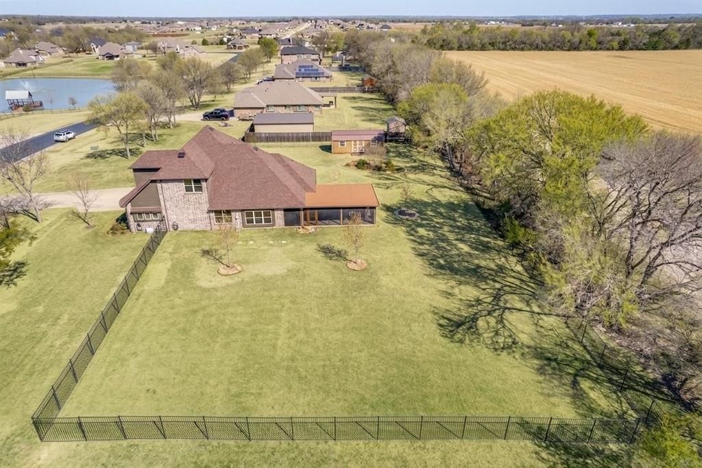 Perched atop a scenic hill, this location combines quiet mornings, sweeping views, and everyday comfort. Set on a 1 acre lot, this beautifully maintained 4 bedroom, 3 bath home offers a highly desirable open floor plan filled with natural light. The updated kitchen flows effortlessly into the main living areas, highlighted by real hardwood floors, while new carpet in the bedrooms makes this home truly move in-ready. The spacious screened in porch, where peaceful, tree-lined views create a true sense of escape, is perfect for morning coffee or unwinding at sunset. The property also features a 3 car garage and a storage shed with electricity. Major upgrades bring both value and peace of mind, including a 2.5 yr old Class 3 impact resistant roof, over $130,000 in updates, new water heaters, and a new downstairs HVAC system. A full sprinkler system adds convenience and helps maintain the beautifully kept grounds. Located in the sought-after Trails of Blue Ridge master-planned community, residents enjoy exclusive access to over 132 acres of nature preserve, including hiking and biking trails, off road paths, camping areas, and a stocked fishing pond just across the street, offering a rare blend of privacy, outdoor adventure, and everyday convenience. All of this with easy access to the DFW metroplex, giving you the best of peaceful country living without sacrificing proximity to the city.