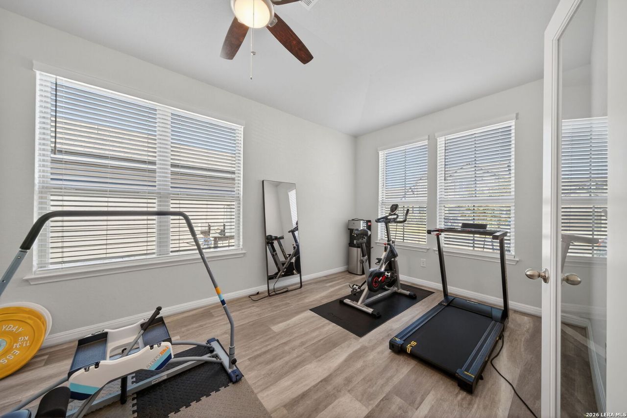 3.25% ASSUMABLE LOAN AVAILABLE TO QUALIFIED BUYERS! Tucked within the highly sought-after Asher Place community, this meticulously maintained single-story residence offers refined living with effortless sophistication. Spanning 1,842 square feet, this thoughtfully designed home combines elevated finishes with functional elegance, all within the acclaimed Schertz-Cibolo-Universal City ISD. From the moment you step inside, youre welcomed by an expansive open-concept layout enhanced by luxury vinyl flooring and abundant natural light. The heart of the home is the beautifully appointed kitchen, featuring stainless steel appliances, tile backsplash, and seamless flow into the living and dining spaces-ideal for both everyday living and entertaining. A spacious private study provides flexibility for a home office or quiet retreat. The primary suite is a true sanctuary, complete with a charming bay window sitting area, custom lighting, and a striking fireplace that adds warmth and ambiance. The en-suite bath offers spa-like comfort with a garden tub, separate shower, dual vanities, and an oversized walk-in closet. Outdoors, enjoy a covered patio overlooking a fully fenced backyard, perfect for relaxation or hosting gatherings. A full sprinkler system ensures ease of maintenance year-round. Ideally located near JBSA-Randolph, JBSA-Fort Sam Houston, and major highways, this home offers both convenience and an elevated lifestyle in one of the areas most desirable communities.