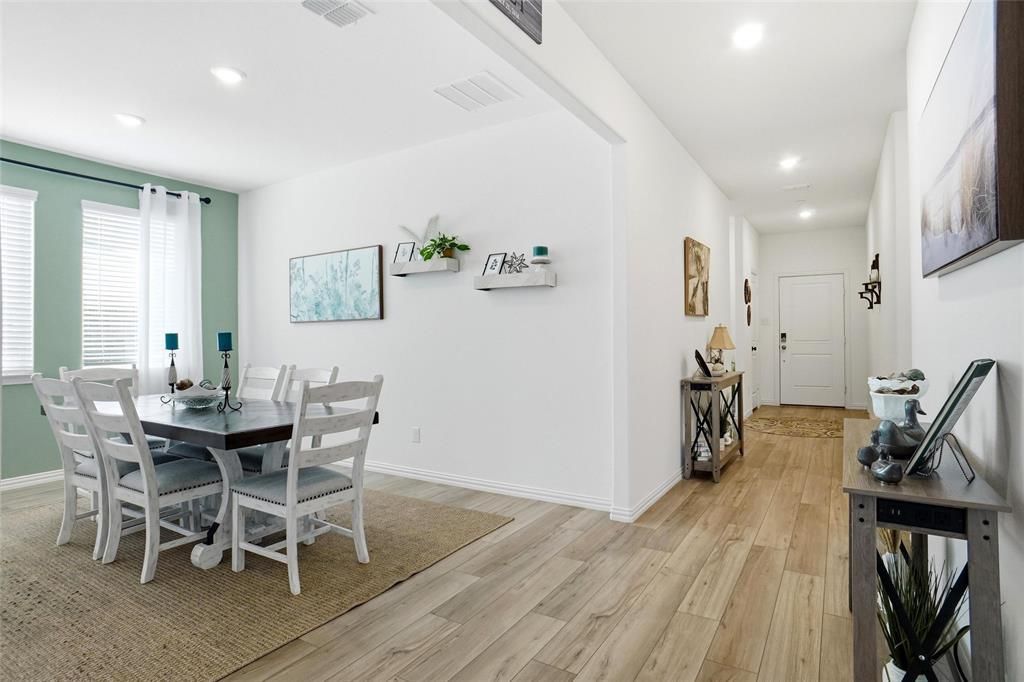 Like-new 2023 build in Azle Grove with stylish upgrades and smart home features! This beautifully maintained 4-bedroom home offers custom plantation shutters, a chef-inspired kitchen, and a garage with beautiful epoxy flooring—perfect for modern living and entertaining in Azle. Step inside to a light-filled, open-concept layout enhanced by custom plantation shutters, smart home features, and luxury wood-look LVP flooring throughout the main living areas. The kitchen is designed to impress with Quartz countertops, an island, gas range, tiled backsplash, walk-in pantry, and abundant cabinet space.The spacious living area flows seamlessly from the kitchen, creating the perfect environment for gathering with family and friends, while a separate dining room offers an ideal space for hosting holidays and special occasions.Enjoy a smart split-bedroom design with generously sized secondary bedrooms and a versatile front bedroom—perfect for a home office, guest room, or workout space. The private primary suite provides a relaxing retreat with a spacious ensuite bath.Step outside to a fully fenced backyard featuring a covered patio, and plenty of room for outdoor living, pets, or future customization.The 2-car garage stands out with beautiful epoxy flooring, offering both durability and a clean, polished look for everyday use.Residents of Azle Grove enjoy access to a scenic community pond and walking trails, adding to the peaceful neighborhood feel. Located in Azle Independent School District, with easy access to shopping, dining, major roadways, and just minutes from Eagle Mountain Lake, this home offers the perfect blend of comfort, convenience, and lifestyle.This meticulously maintained home offers the perfect combination of modern comfort, space, and location. Schedule your showing today to see this spotless, move-in ready gem!