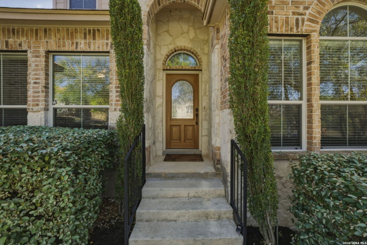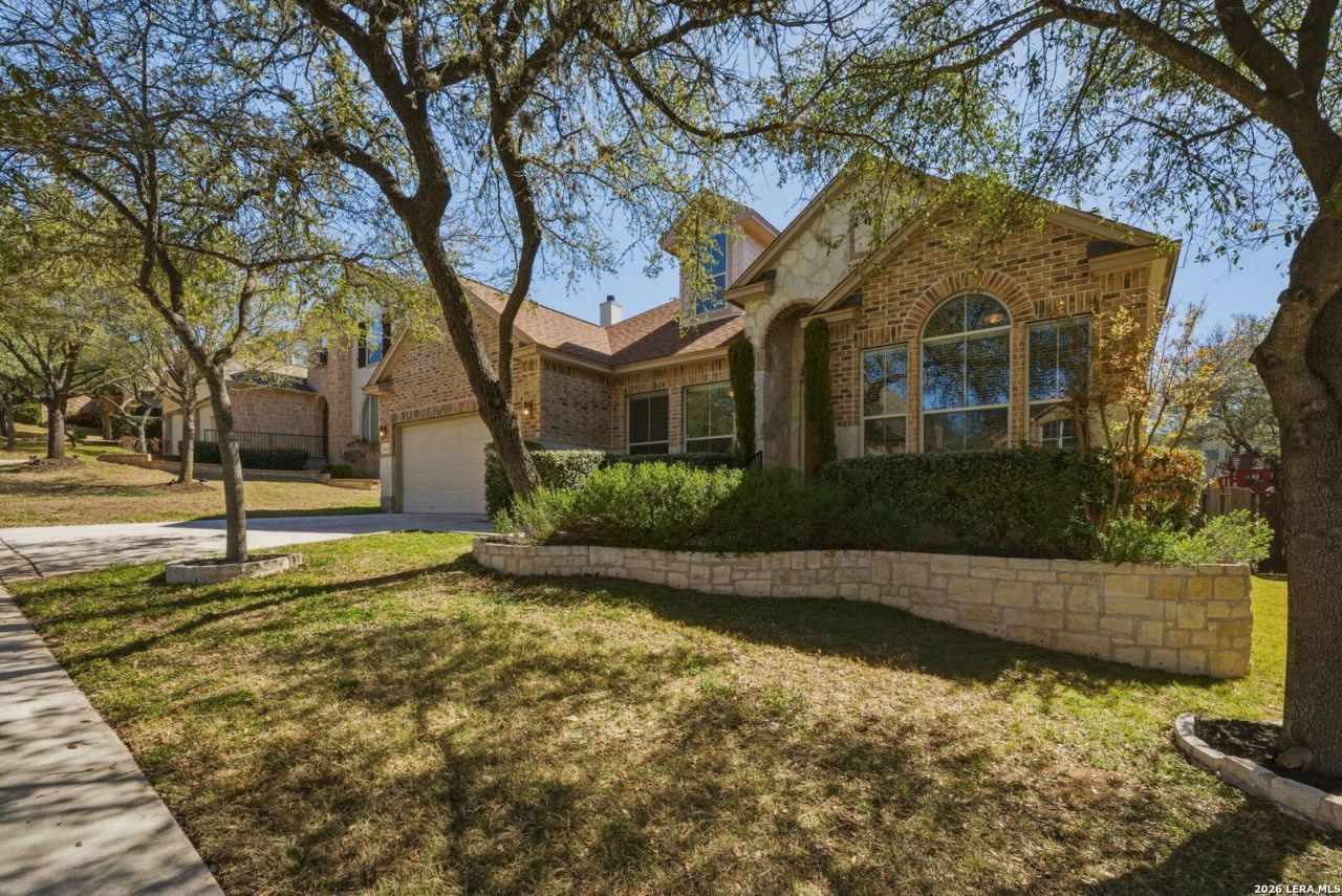 Tucked behind the gates of the prestigious Sonoma Ranch community, this beautifully appointed 4-bedroom, 3.5-bath home offers 3,190 square feet of thoughtfully designed living space-blending Hill Country charm with everyday luxury. A classic brick exterior, mature oak trees, and lush landscaping create a warm and elegant first impression. Step through the stunning front door with decorative glass and a soaring arched transom window into a bright, welcoming foyer that sets the tone for whats inside. The main level features two spacious living areas, a formal dining room, and a sunlit breakfast nook-perfect for enjoying your morning coffee. The formal living room showcases an elegant tray ceiling that adds architectural interest and a sense of openness. At the heart of the home, the chefs island kitchen shines with rich cabinetry, granite countertops, double ovens, a gas cooktop, recessed lighting, and a breakfast bar-all flowing seamlessly into the living spaces for easy entertaining. The inviting family room centers around a cozy brick gas fireplace, complemented by custom built-in shelving. A private office with French doors offers the perfect work-from-home setup. The primary suite is a peaceful retreat, featuring a beautifully elevated ceiling detail that adds dimension and character, along with abundant natural light for a bright, airy feel. The spa-like en-suite bath includes a walk-in shower, soaking tub, dual split vanities, and a spacious walk-in closet. Two generously sized secondary bedrooms are conveniently located on the main floor. Upstairs, a versatile bedroom with its own private bath provides endless possibilities-ideal as a game room, media room, guest suite, or teen retreat. Step outside to your private backyard oasis, complete with a large concrete patio, mature shade trees, and plenty of space to relax or entertain. A storage shed adds extra convenience for tools, hobbies, or additional storage. Residents of Sonoma Ranch enjoy exceptional amenities, including a resort-style pool, tennis courts, clubhouse, playground, sport court, and scenic walking trails-all within a secure, gated community. Ideally located with quick access to Loop 1604, I-10, and Hwy 151, youre just minutes from UTSA, La Cantera, The Rim, and Six Flags Fiesta Texas, and zoned to the highly acclaimed Northside ISD.