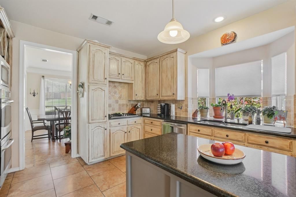 Heritage Middle School & Heritage High School! A beautifully maintained 2 story home with 4 bedrooms and 3 full bathrooms. 2 living areas, 2 dining areas, one secondary bedroom, and one full bathroom on the main floor. Upstairs, primary suite with an ensuite bathroom, 2 bedrooms, one full bathroom and a game room. One AC replaced (2025). Roof replaced (2024). One AC replaced (2024). Wood siding repaired & insulation added in 2024. Carpet in the primary bedroom replaced (2020). Primary shower redone. Granite counters, stainless steel appliances including double ovens, microwave, dishwasher and gas cook top. Spacious primary bedroom with room for a sitting area and walk in closet. Engineered wood floors. Updated lighting fixtures. Crown molding and millwork. Solar screens on the windows on the back of the home. 2 car attached garage with lots of storage (shelves and peg boards). 12x8 shed. Beautifully landscaped front and back yards. Minutes from Grapevine Elementary School, Pleasant Glade Pool and Bear Creek Park. Also close to Glade Parks (restaurants & stores) and the brand new HEB. Parr Park with walking trails is also close. Minutes from Highway 121 and Highway 360 for an easy commute.