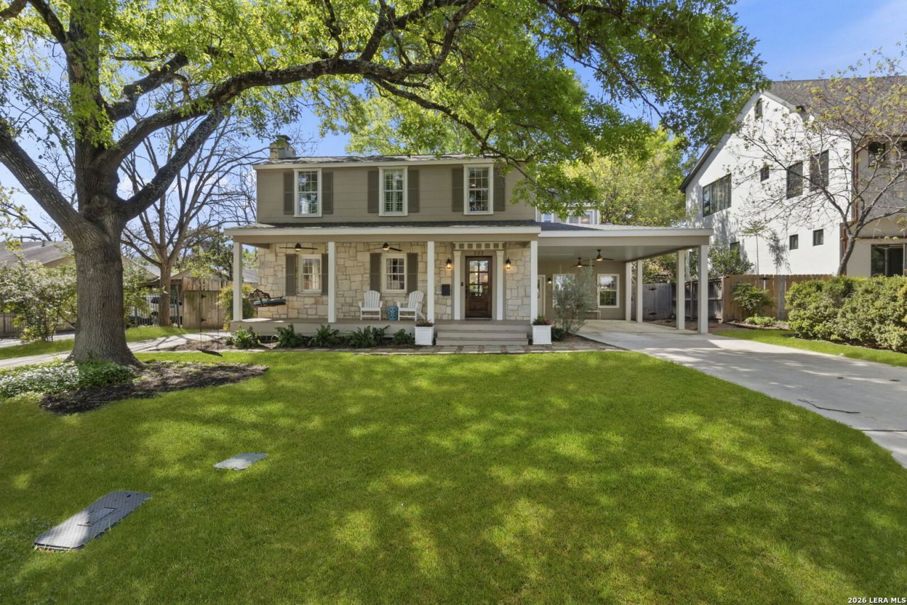 Blending timeless architecture with elevated modern living, this beautifully reimagined two-story residence is gracefully set within one of Alamo Heights most established and sought-after enclaves. Thoughtfully designed for both everyday comfort and refined entertaining, the home offers a seamless balance of sophistication and livability. All four bedrooms are privately situated on the upper level, creating a quiet retreat, while the main level unfolds with an effortless flow of inviting living spaces below with an abundance of natural light. The formal living room is anchored by a classic fireplace and a richly detailed family room features exposed beams and a statement fireplace that adds warmth and architectural depth. A dedicated dining room sets the stage for elevated gatherings, while the chefs kitchen serves as the heart of the home. Meticulously updated, it showcases custom cabinetry, rich hardwood flooring, and an oversized island with a gas cooktop designed to be as functional as it is visually striking. The open-concept layout allows for seamless connection to the surrounding living spaces, enhancing both everyday living and entertaining. Outdoors, a private and thoughtfully curated setting awaits. The patio offers built-in seating and a raised garden bed, creating a serene backdrop for al fresco dining or quiet evenings. A detached garage provides flexibility for storage, workshop space, or future customization, and is equipped with an EV charger for modern convenience. Perfectly positioned within the highly regarded Alamo Heights ISD, the home enjoys close proximity to some of San Antonios most desirable destinations, including Charis Park, The Pearl, Quarry Golf Course, premier dining, boutique shopping, and cultural attractions. Walkability to Alamo Heights High School, the Junior School, and Sunset Ridge Shopping Center further enhances the homes exceptional lifestyle offering. A rare opportunity to own a residence that effortlessly combines character, comfort, and an elevated sense of place.