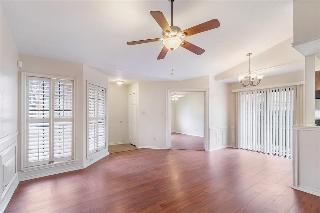 *NO HOA!*MOVE-IN READY!*HALF-DUPLEX!*Charming 3-bedroom, 2-bath half-duplex featuring a functional open-concept layout and no HOA. A covered front entry welcomes you into the spacious living room filled with natural light and highlighted by a cozy wood-burning fireplace with a travertine stone surround and hearth. Wood-look laminate flooring and warm wood accents can be found throughout the home, adding character and continuity to the living spaces. Plantation shutters in select rooms provide both style and privacy.The living area opens seamlessly to the eat-in dining space, creating an ideal setup for everyday living and entertaining. The kitchen offers ample wood cabinetry, generous counter space, an electric range with vented exhaust fan, and convenient access to the dining area for easy meal preparation.The primary bedroom offers a comfortable and private space and features an ensuite bath complete with a shower and tub combination. Two additional bedrooms offer abundant natural light, walk-in closets, and flexibility for guests, family, or a home office.Step outside to a spacious backyard with plenty of room for outdoor activities, pets, gardening, or future outdoor living enhancements.This well-maintained home offers comfort, functionality, and flexibility in a convenient location with the added benefit of no HOA.