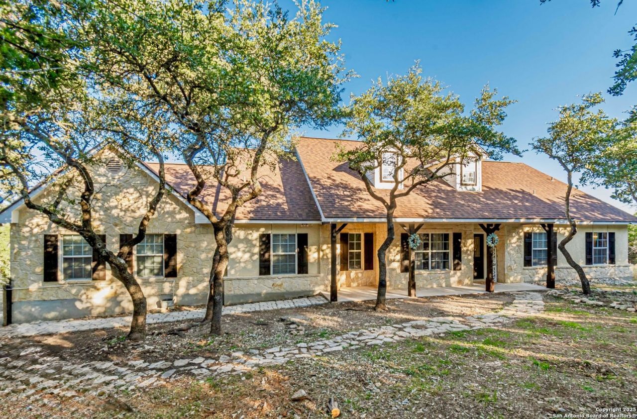 NEW Paint, NEW Pics & NEW Price! This multigenerational hill-country home is the one youve been waiting for. Welcome to this stunning 4-bedroom, 3-bathroom home nestled on 2.47 acres in the desirable Lakewood Estates community of Lakehills, Texas. Inside, youll find freshly interior painted walls that provide an open and airy feel, with soaring 14-foot ceilings and a wood-burning fireplace for those colder nights. The living room flows seamlessly into the stylish kitchen equipped with LG smart appliances, walk-in pantry, granite countertops, an island, and plenty of storage space. Features of the primary bedroom include a spacious walk-in closet, garden tub with separate shower, separate vanities, and its own direct access to the patio. The home also includes a dedicated office, ideal for working remotely or managing household projects, and a 2025 water softener for added comfort and efficiency. The pool table is also negotiable with the sale, making this home an entertainers dream. The attached guest suite offers ultimate versatility with its own kitchen, private bathroom, and living area thats ideal for extended family or guests. Step outside to the newly built, expansive back patio, where you can take in breathtaking Hill Country views and unforgettable sunsets. Its generous size offers endless possibilities for outdoor dining, lounging, or hosting under the Texas sky, all surrounded by the beauty and shade of mature Oak trees. The property features a metal shed with a 50-amp RV hookup that has ample space for storage and can fit up to three full-size vehicles. Additionally, it features another shed with electricity, a pad already in place for an above ground pool, fenced in play set for the kids, a dog run, and seasonal creek. Here in Lakewood Estates, youll have access to exceptional neighborhood gated amenities to include, a sparkling community pool, playground, volleyball and basketball courts, lots of nature walking and a private boat ramp to Lake Medina - PERFECT for weekends on the water or sunset picnics! This home truly captures the best of Texas Hill Country living!