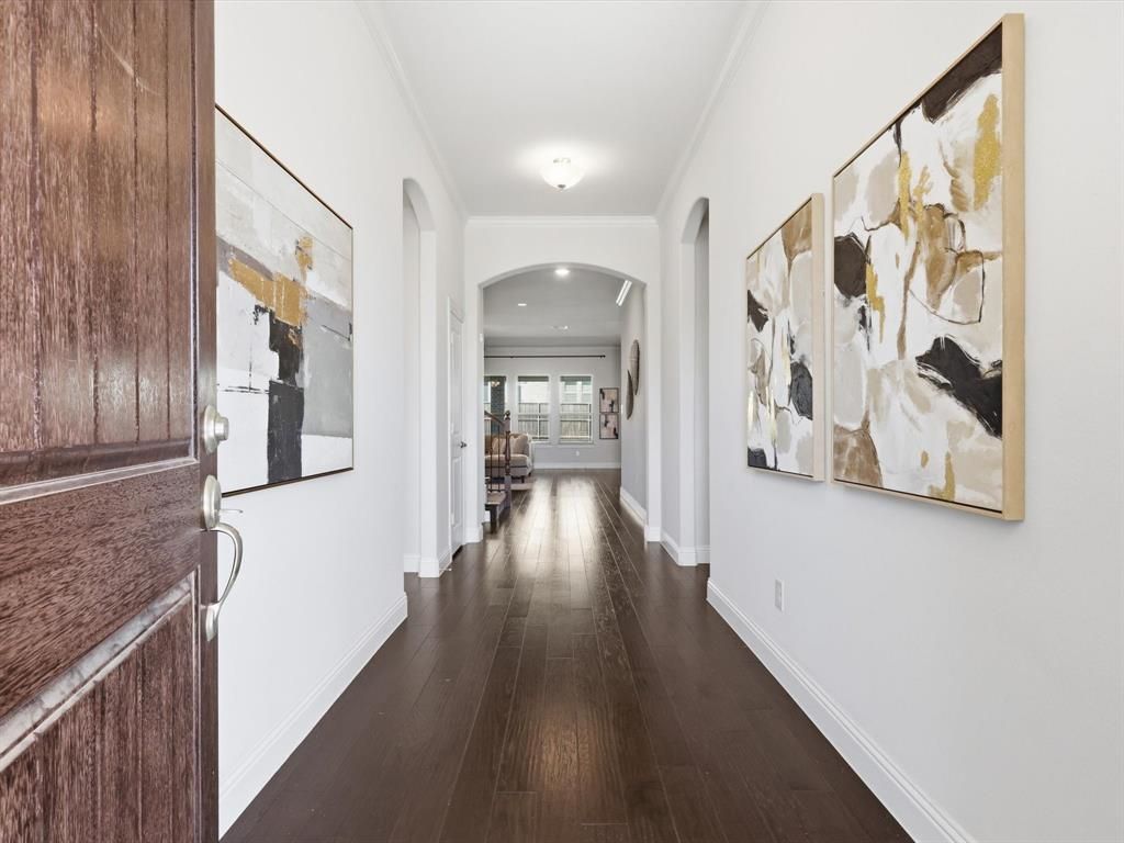 Discover this stunning 1.5-story home in Somerset Park, situated on a greenbelt facing lot in highly sought-after Rockwall ISD. Beautiful hardwood floors carry you into an expansive open-concept layout designed for both comfort and functionality. The inviting living room showcases a cozy gas fireplace and a wall of windows that fill the space with abundant natural light. The spacious gourmet kitchen is perfect for preparing home-cooked meals, offering Quartz counter-tops, sleek Frigidaire Gallery appliances, a 4-burner gas cooktop, center island, and a walk-in pantry with plenty of storage. The adjoining dining area provides an ideal setting for both elegant dinner parties and casual everyday meals, flowing seamlessly from the kitchen. Privately situated at the back of the home, the primary suite offers a peaceful retreat with a spa-like ensuite bath featuring Quartz counter-tops, dual sinks, a soaking garden tub, separate shower, and an oversized 17×9 walk-in closet. Three additional bedrooms and two full bathrooms are conveniently located on the first floor. Upstairs, you’ll find a spacious game room or media room complete with a half bath—perfect for family movie nights, entertaining, or relaxing. Step outside to enjoy your private backyard featuring a covered and extended patio, ideal for outdoor gatherings or quiet evenings at home. The home is perfectly located near Historic Downtown Rockwall with easy access to highways, shopping, dining, entertainment, and the scenic shores of Lake Ray Hubbard.