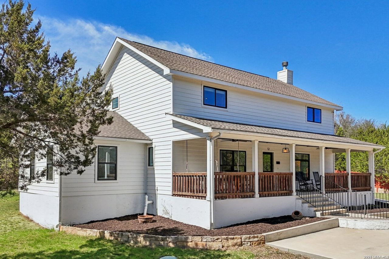 Wonderful investment opportunity or Hill Country retreat! This spacious 5-bedroom, 3-bath home features a large upstairs game room and a completely private, gated yard. A dreamy, expansive front porch sets the tone-perfect for sipping your morning coffee and taking in the peaceful surroundings. The outdoor living is truly exceptional, featuring a covered patio, pergola, and outdoor fire pit-perfect for hosting and enjoying Hill Country evenings. Beyond the privacy gate, youre welcomed into your own secluded escape just minutes from Canyon Lake, Wimberley and New Braunfels! Inside, enjoy cozy evenings by the fireplace and the convenience of an eat-in kitchen designed for gathering. The best part? This home is truly turnkey-furniture is included, making it ready to enjoy or rent immediately. Currently operating as a successful short-term rental. With an unrestricted neighborhood, the possibilities are endless as a primary residence, vacation home, or income-producing investment.