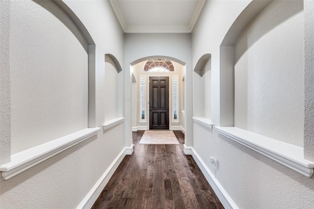 Welcome to this beautifully maintained north-facing home in Frisco, TX, offering exceptional curb appeal and tasteful updates. Step inside to tall ceilings, fresh paint, crown molding, and abundant natural light that create an elegant yet comfortable atmosphere. Plantation shutters throughout the home add both style and function, while the thoughtfully designed open layout makes everyday living and entertaining effortless. The updated kitchen opens seamlessly to the main living area and features modern finishes, generous counter space, and a large island perfect for gathering with family and friends. Spacious living and dining areas provide flexibility for both casual evenings and hosting guests. The home is completely updated and turnkey ready including a new HVAC system and recent roof replacement. Enjoy relaxing on the private patio or take advantage of neighborhood amenities including a community pool, jogging trail, and playground. Located in a highly desirable Frisco neighborhood and zoned to Wakeland High School, with the added convenience of being within walking distance to schools. Close to shopping, dining, and major commuter routes, this home offers the perfect blend of lifestyle, location, and move-in-ready comfort.