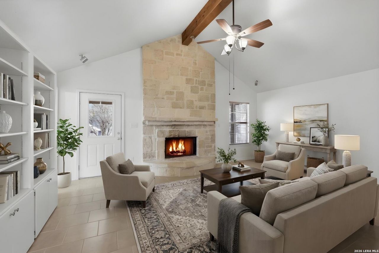 Wonderful custom 1-story home on 9.89 ac. perfectly situated only 35 minutes from downtown San Antonio! Very private setting with abundant wildlife - deer, wild turkey and doves. Owners added a water well 8/23. High speed internet available so you can work from home! Gated ranch entry with a custom steel gate added 9/25. Fully fenced w/multiple cross-fenced sections and includes a small stock tank, a goat pen, chicken coop, bunny hutch and many fruit & nut trees (including apple, peach, plum, mulberry, pomegranate, and almond). Owners also added a water softener/RO system 1/24, and an Iron Breaker 3/25. Benson City water is on-site too. A/C coil was replaced 7/25. New dishwasher installed 2/26. Enjoy the island kitchen with breakfast bar and 2 large pantries. Fridge, Washer and Dryer stay! Large formal dining room and an office with French doors leading to the huge 35 X 10 rear patio with beautiful views of the sunset. The Family room has high ceilings and a floor-to-ceiling stone fireplace. Primary bedroom is set far away from the secondary bedrooms. One car garage and 2 separate carports to store your vehicles or equipment. Must see!! Grass is enhanced in some photos.