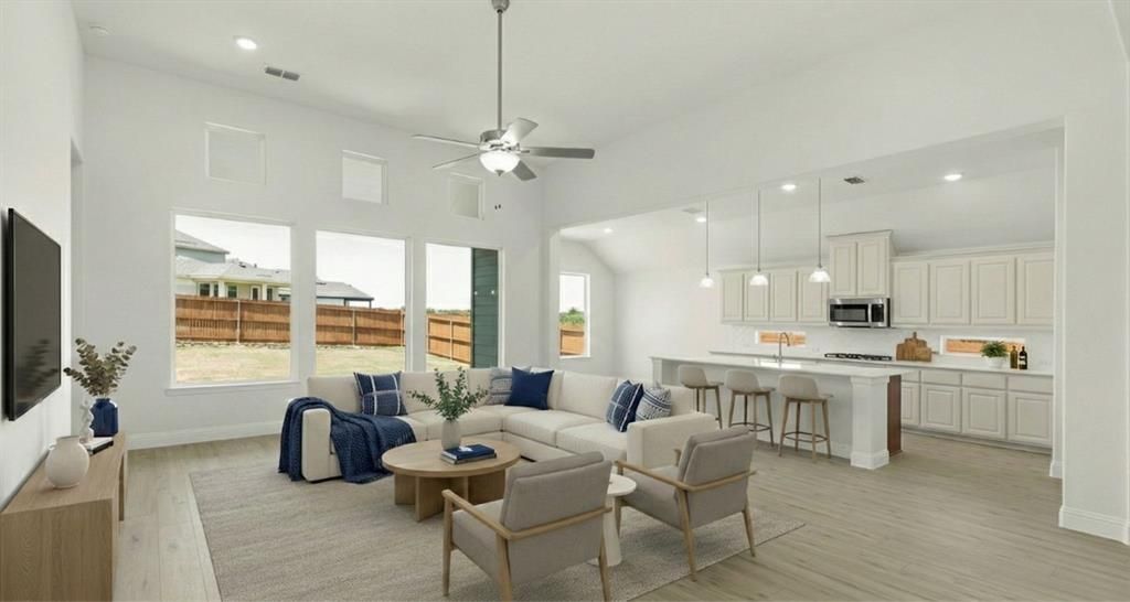 MORTGAGE INCENTIVE UP TO $6,000 2-1 RATE BUY DOWN on this Brand-new construction by Pacesetter Homes — Fantastic 1-story home featuring 4 bedrooms and 2.5 baths with an open, modern layout designed for comfortable living and easy entertaining. The spacious family room showcases soaring 12-foot ceilings, transom windows, and a bright foyer that fills the home with natural light.The kitchen is built for gathering, offering crisp white cabinetry, a striking two-tone oversized island, stone countertops, gas cooktop, built-in oven and microwave, and stainless steel appliances. A versatile bonus room provides flexible space for a media room, office, den, or secondary lounge.The private primary suite is tucked away from the secondary bedrooms, creating a peaceful retreat with extra windows, two walk-in closets, and direct utility room access from the main closet. The spa-like bath features a frameless glass shower and dual vanities.Luxury vinyl plank flooring enhances the main living areas with durable, low-maintenance style. Smart home features include a Ring video doorbell, Brilliant smart home lighting and music control, Honeywell Smart T6 thermostat, WiFi-enabled garage door, and Rain Bird WiFi sprinkler system.The exterior showcases distinctive architecture with standout curb appeal. Located in a rapidly growing community with an onsite school and resort-style amenities including a clubhouse, dock, pool, fishing areas, fitness center, and scenic greenbelt spaces — all within 30 minutes of Dallas.