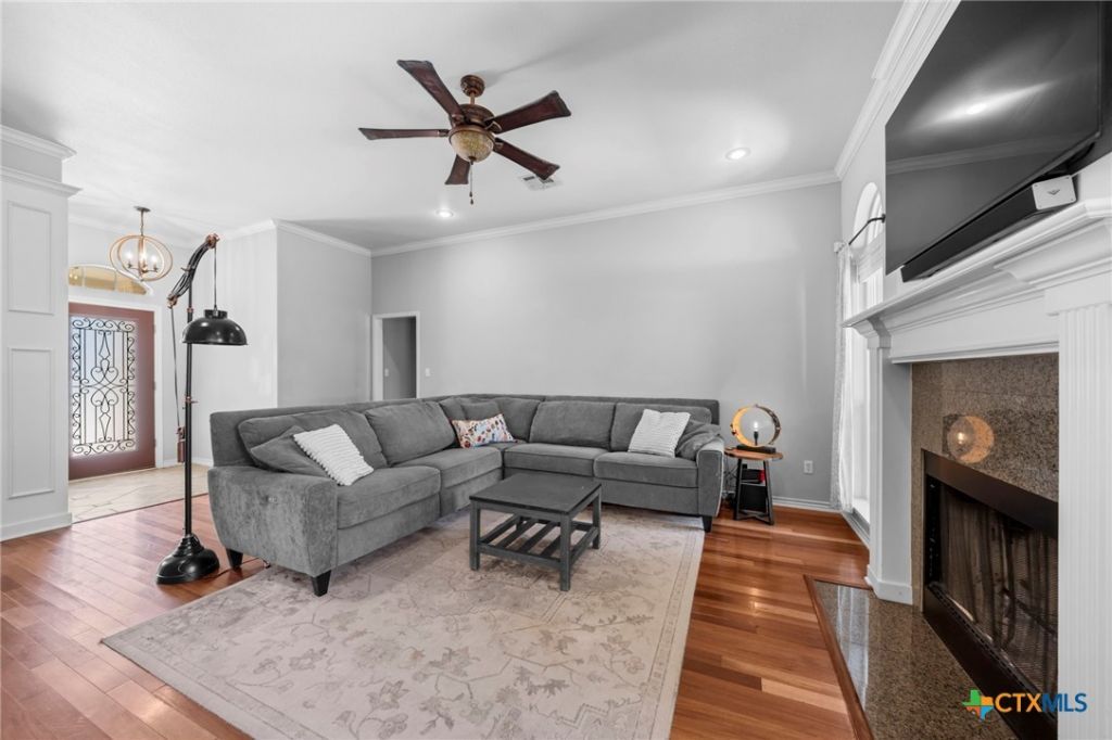 Welcome to this beautiful 4-bedroom, 3-bath home in the desirable Saddle Creek neighborhood of Belton. With impressive curb appeal, meticulous landscaping, and a covered front porch, this home makes a stunning first impression. Inside, youre greeted by a formal dining area overlooking the front yard. The spacious living room features a charming fireplace with mantel and multiple windows that fill the space with natural light. The kitchen offers granite countertops, a complementary tile backsplash, stainless steel appliances, abundant storage, and bar-top seating. Just off the kitchen, the breakfast nook provides a fantastic view of the backyard. The large primary suite is a true retreat, complete with tray ceilings, private access to the backyard, and an en-suite bath featuring granite countertops, a step-in shower, and a walk-in closet. Upstairs, youll find the additional bedrooms along with a game room featuring a wet bar, creating the perfect setup for entertaining or relaxing. Step outside to the backyard oasis, designed for enjoyment and relaxation, with an in-ground tile saltwater pool and an inviting entertainment-ready atmosphere.