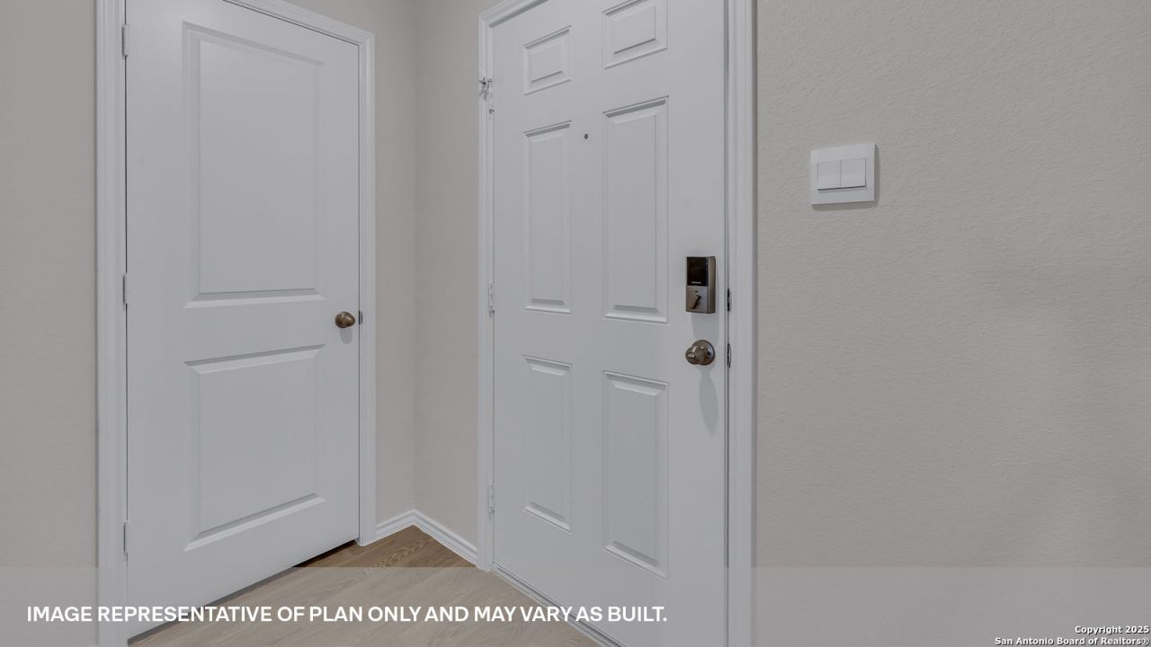 MOVE IN READY. Step inside the Caprock at Sunset Oaks in Maxwell, Texas. This one-story new home offers 3 bedrooms, 2 bathrooms and a 2-car garage across 1,434 square feet of living space. Our homes in Sunset Oaks feature our modern farmhouse. From the front porch, step inside the home and cross through the foyer and hallway. The utility room is off the foyer and connects to the garage, making it a perfect mud room. The heart of the home is the open concept living space. The kitchen, dining and family room flow seamlessly into the other, making this space perfect for creating lasting memories. The kitchen features an island with a stainless-steel sink, quartz countertops, 42 upper picture frame cabinets, a pantry closet, and stainless-steel appliances, including a gas range. The primary bedroom is located at the back of the home. Unwind at the end of your day in this private ensuite. The attached bathroom includes a walk-in shower, cultured marble vanity with trench sink and a walk-in closet. The secondary bedrooms and bathroom are located off the kitchen. The bedrooms include carpet and closets with wood shelving. The secondary bathroom has a shower/tub combination and a cultured marble vanity with trench sink. This home features our Americas Smart Home base package, which includes the Video Front Doorbell, Front Door Deadbolt Lock, Home Hub, Thermostat, and a Smart Switch.