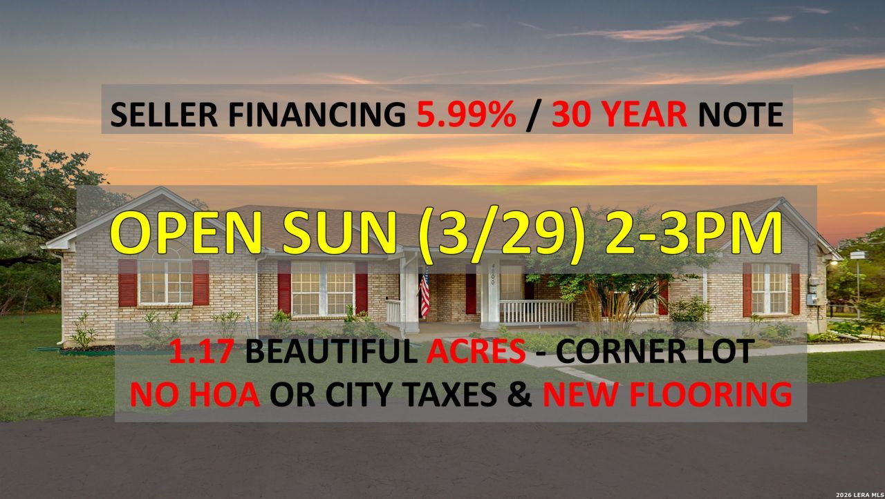 5.99% interest with a 15% down-payment and the remainder seller financed over 30 years (equal monthly payments calculated on principal & interest). Open plan single-level three-bedroom home in excellent condition on 1.17 acres with many mature, manicured trees in the conveniently located Northwood Hills neighborhood. New wood laminate flooring in the entry, study, dining room, living room, and breakfast nook. New neutral carpet in all three bedrooms. Luxurious primary bathroom with oversized walk-in shower, twin vanities, and dual walk-in closets. 17 x 14 covered patio. 16 x 11 storage shed. No City property taxes. There is no mandatory HOA.