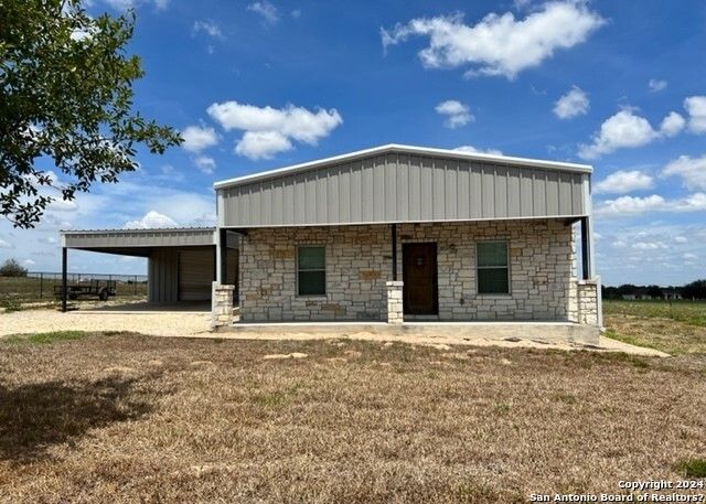 If youre looking for country living, this well-maintained two-bedroom barndominium sits on 1.84 acres of fully fenced property with a gated entrance and beautiful open views. The interior features stained concrete floors throughout for style and easy maintenance, a spacious living area that opens to the kitchen with granite countertops, a breakfast bar, and a flat-top stove. The home also offers comfortable bedrooms and a large indoor laundry room with plenty of space for additional storage. The property includes a workshop with a two-car carport, plus a covered storage building behind it that is ideal for outdoor entertaining. With plenty of space for an RV, boat, or additional equipment, this property offers the flexibility and privacy of country living while still providing practical amenities. Located in La Vernia ISD. Pets considered on a case-by-case basis.