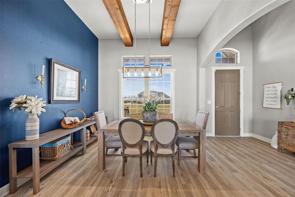 Welcome to luxury living in the highly sought-after Waterstone Estates! Priced as the best opportunity in the neighborhood by far, this stunning one-story home offers the space, style, and upgrades today’s buyers want—all on a full acre. From the moment you arrive, the curb appeal stands out with a beautiful blend of brick, stone, and rich wood accents. Inside, you’re greeted by soaring ceilings with exposed wood beams, creating a warm, custom feel in the main living area, which is anchored by a striking fireplace and filled with natural light. The open-concept kitchen is both timeless and practical, featuring crisp white cabinetry, a large island, stainless steel appliances, and a walk-in pantry. It flows seamlessly into the dining and living spaces, making it perfect for entertaining. All new flooring installed March 14, 2026 gives the home a fresh, cohesive, and truly move-in-ready feel. The private primary suite offers a true retreat with a spa-like bathroom, soaking tub, dual vanities, and a spacious walk-in closet. Secondary bedrooms are generously sized, and the flex space provides endless possibilities: a home office, playroom, workout space, or second living area. Step outside and experience a backyard built for entertaining—featuring a sparkling pool, expansive patio, and a fully equipped outdoor kitchen, all set against wide-open views across your full acre lot. Located in Waterstone Estates, known for its privacy as a gated community, acreage homes and peaceful setting, this property combines luxury, space, and value in a way that’s hard to find. Hurry in, this one won't last!