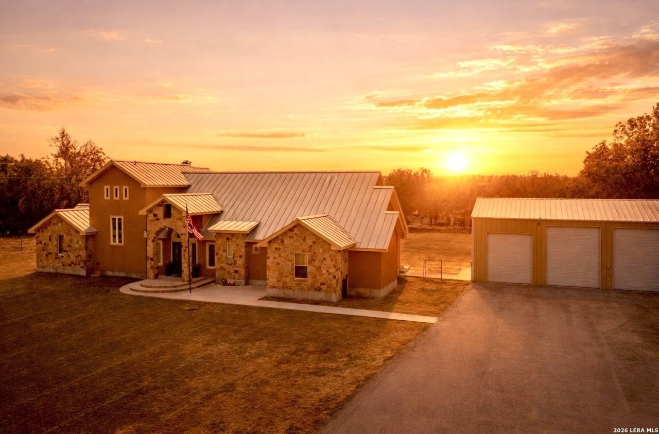 Texas Space, Views & Versatility on 2.44 Acres- If you have been looking for a property that truly does it all then stop compromising and just say "Welcome Home"! Set on 2.44 full fenced peaceful acres, this stunning Texas retreat offers room to live, work, host, and breathe. The primary residence features 4 spacious bedrooms,3.5 Baths, and jaw dropping countryside views that remind you why you chose country living in the first place. The kitchen is truly the heart of this home - a place where families gather, stories are shared, and memories are made. With custom solid-wood cabinetry, generous workspace and a walk-in pantry built for real life, its ideal for everything from everyday meals to holiday celebrations. The primary suite being on the main floor offers amazing convenience and retreat like comfort, while upstairs you can find an amazing game/living and private bedroom with full bath that opens to a private balcony that overlooks the rolling countryside. But wait. . . .it gets better. Did I mention the fully independent 1 bedroom/1 bath residence (approx. 640 sq. ft) complete with full kitchen, laundry, and separate meter making it ideal for in-laws, long-term guests or even rental income? Need even more? How about the 5 car detached dream garage with concrete floors, its own bathroom, three oversized doors, soaring ceiling and a 30-am RV hookup! This isnt just a home - it is a lifestyle and an opportunity to let your vision go wild with possibilities. Schedule your private showing today.