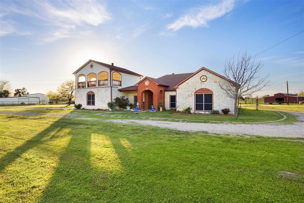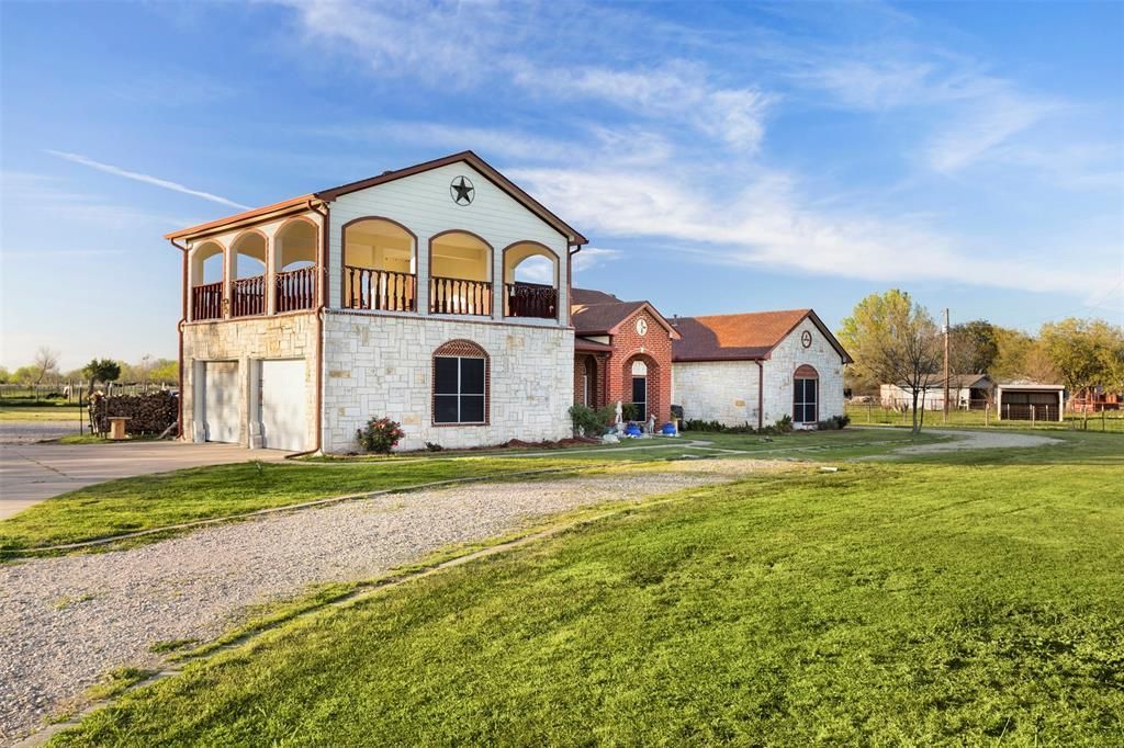 If you're looking for acreage that offers a blend of great location, a place for all of your animals to roam, a beautiful home, and a place for your home business then look no further, you've just found the perfect property! This gem of a property is located very near Hwy 175, within minutes of Wal Mart, the hospital, and the historic downtown square in Kaufman. The 14.07 acres is fully fenced with a gated entry, has a barn with stalls and a tack room, a loafing shed, a round pen, workshops, hobby shops, dog runs, a pond, & it is Ag Exempt. There's a one car garage with 2 bays, and above the garage is the most amazing entertainment area, perfect for hosting any type of function - birthday parties, weddings, or just plain sunset watching. The possibilities for this area are endless. The home is tiled throughout, and the gray accent paint is stunning. When touring the home, make sure to look up, the ceilings in the living room and master bedroom are unique, and add a definite wow factor. The stone fireplace and wood mantel in the living area make for the perfect cozy night at home. After a long day of work, head to the master bathroom to take a relaxing bath in the jetted tub. It's your own private resort in the privacy of your own home. This is a must see. This property won't last long, so schedule your tour today.