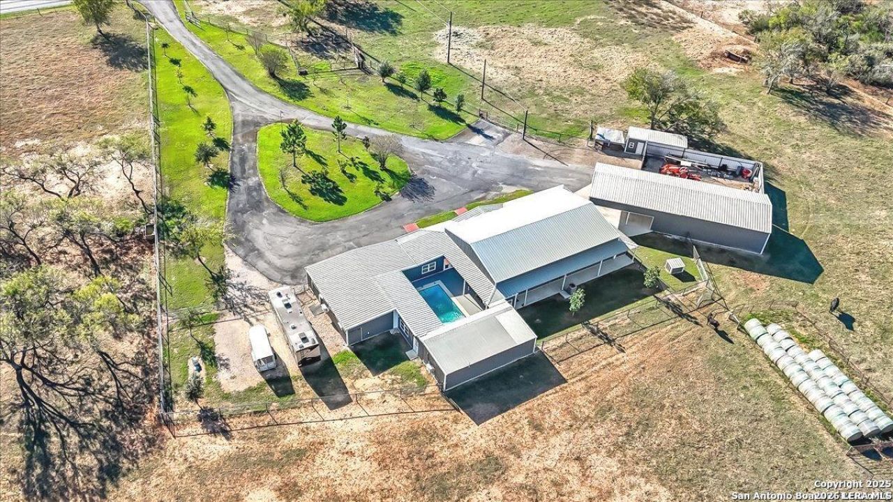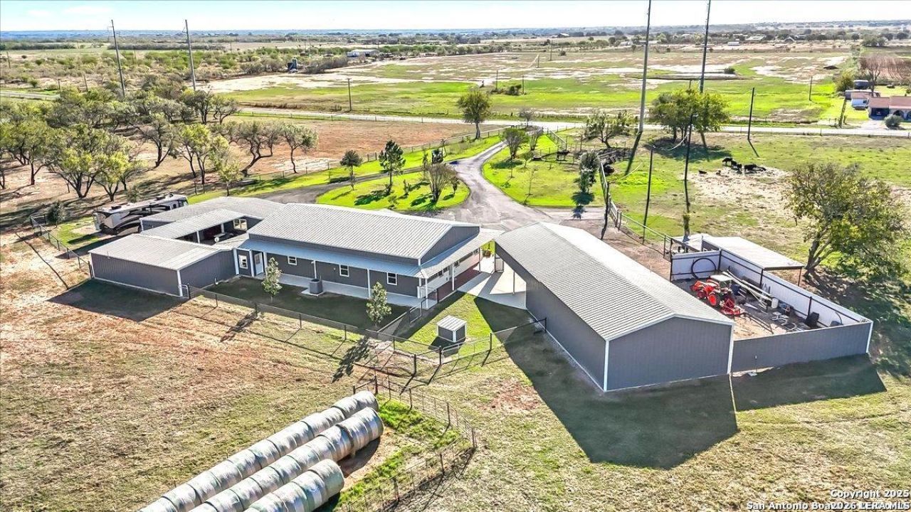 **Very Interesting Set-Up**...Mini Ranch w/Lots of Extras on 11.47 Fenced & Cross Fenced Acres (Approx 830 wide x 600 deep) w/Paved Road Frontage on 2-Sides..Approx 4100sf of Total Livable Heated & Cooled Space "Amongst" A 2600sf Custom Blt Barndo w/Approx 2000 of Wrap Around Metal Porchs ..(Very Open Floorplan,3-Bd,2-Ba,Gourmet Style Island Kit w/Upgraded Appliances/Cabinets,Raised Deco Ceilings & Central Vac Unit) *PLUS* Approx 720 Attached 2nd Barndo/In-law Suite w/1-Bd,1-Ba,Kit & Living area *PLUS* Approx 800sf Gm Room w/Rustic Finish Out,1/2 Bath,Ice Maker,Pool Table & Other Gaming Items..(NOTE ALL 3 HAVE ENERGY EFFICIENT SPRAY FOAM INSULATION PLUS) Approx 38x20 Metal Carport/Covered area PLUS Approx 1700sf Interior Courtyard w/Ingrd Pool & BBQ area that overlooks all 3 living/game rooms PLUS Approx 40x30 Spray Foam Insulated & Air-Conditioned Metal Bldg Workshop with 1/2 Ba,12x10 Roll-up door & 40x30 Covered Parking area *PLUS* Approx 12x12 Chicken Coop w/20x12 Caged Area & Approx 300 Deep Water Well w/Variable Speed Pump AND Rural Water Meter from SS Water Co & Fiber Optic Internet from CVEC & Sprinkler Sys that Irrigates Approx 1.5 Acres & 20x20 Covered Area w/Working Animal Pens & Concrete Water Troughs & 20 Decorative Entry Gate w/Auto Opener & Asphalt Paved Circle Dr & RV Parking Area w/Hook-ups...CALL 4 Detailed Packet of Info/Appraisal...Country Living w/No City Taxes,Low 1.54% Tax & Low Ag-Exemption Tax Rate.. in Wilson County...A MUST SEE !!!!!