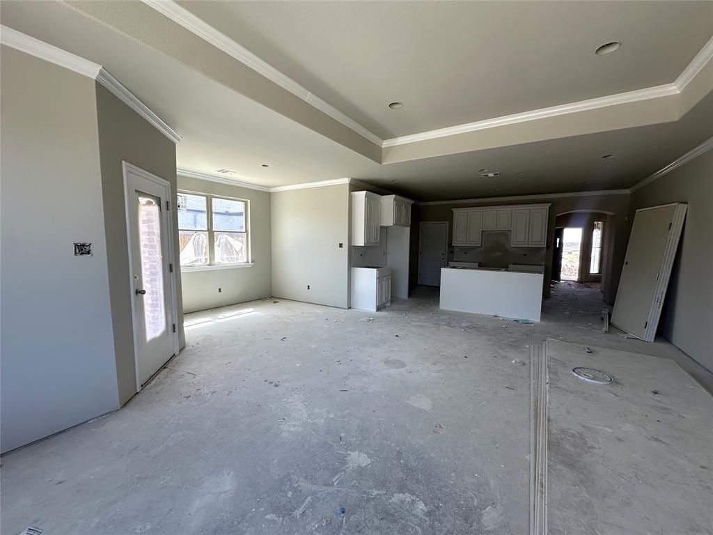 NO HOA!! What other builders consider upgrades Arcadian Select Homes have made them standard features. This beautifully crafted home has a large open kitchen custom cabinetry with 42in uppers large granite island with undermount 50 50 sink and concealed trash cabinet. The stainless Whirlpool appliances make this kitchen a chefs dream Elevated ceilings with crown molding in living area single stage in kitchen, dining, entry and primary. Oversized 5.25 baseboards throughout. Ceiling fans with light in living and primary, guest bedrooms are wired as well. Luxury water resistant vinyl plank flooring in the main areas and hallway. Full security system. The grand entry way has a Speak Easy wood grain front door. Energy efficient windows throughout. Primary bathroom has fully tiled showers with accent flooring. The exterior is beautifully designed with brick and decorative stone. An insulated 3 car fully finished garage offers plenty of room and has neatly textured walls and baseboards. Encapsulated foam insulation for highest energy efficiency. A full sprinkler system takes care of the front landscaping 2 trees as well as the nice size backyard.