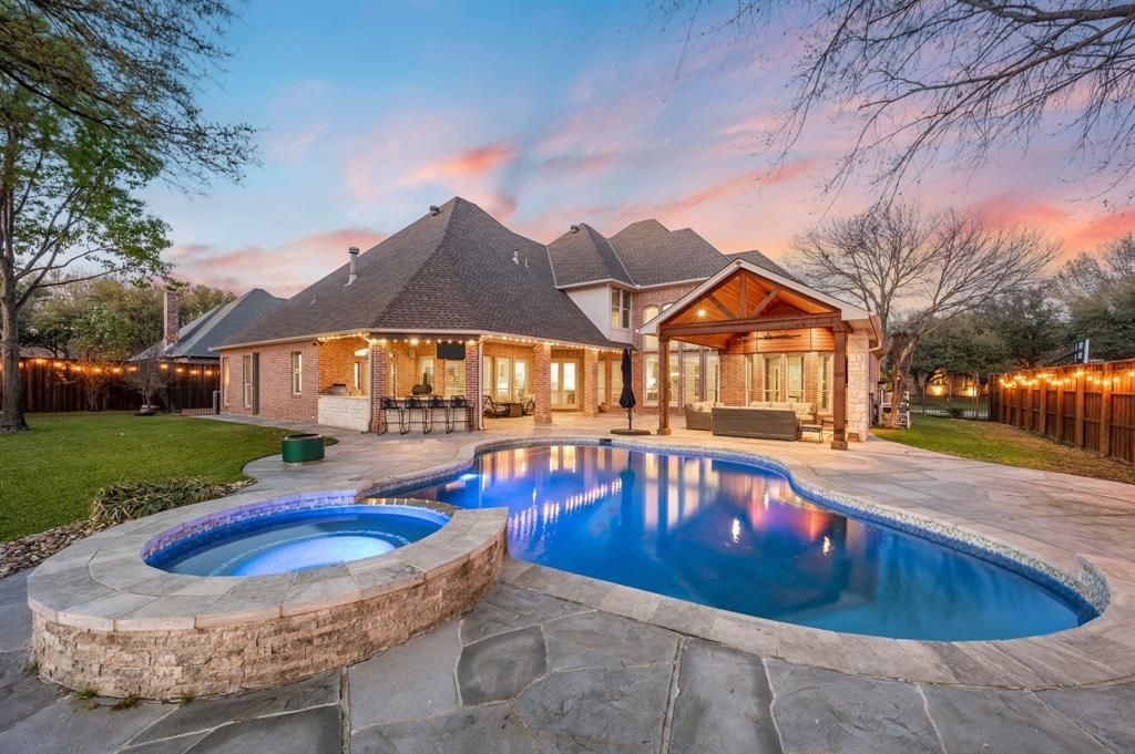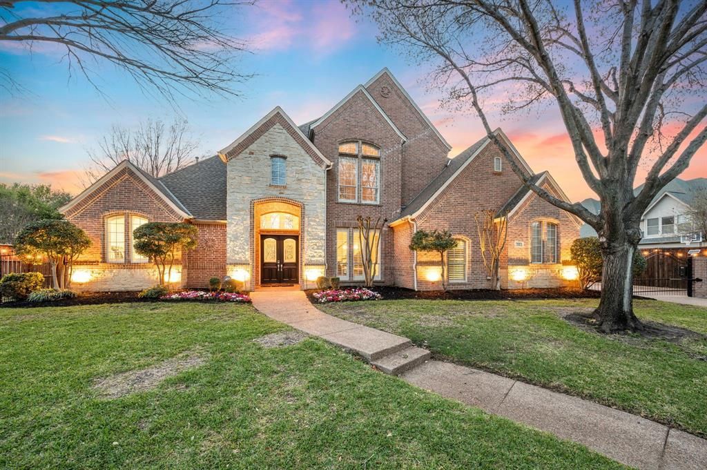 Welcome to 712 Manchester Court - tucked away in the sought after Cambridge neighborhood in Southlake. This four bedroom, four and half bath, three car garage property is situated on just under half an acre and provides the perfect combination of functionality and luxury. The striking curb appeal of the traditionally designed brick and stone facade creates the finest of first impressions. The grand foyer greets with rich, hand scraped hardwood floors and sight lines through to the expansive outdoor living area. Past the curved staircase you find an open concept kitchen, complete with recently refinished cabinets, walk in pantry, gas cooktop, and island, along with a fireplace serving as the center of the family room, all with a wall of windows to the backyard entertaining space. The North wing of the house features a rare first floor media room, guest retreat with ensuite full bath, which also serves as the pool bath, and dedicated office with French doors opening to the covered patio.The opposite wing is reserved for the primary suite, complete with a sitting area and bay windows, as well as an ensuite bath with quartz counters, stand alone soaking tub, and glass encased shower. Upstairs are two generous secondary bedrooms, both with ensuite bath, as well as a game room with a desk alcove for studying or arts and crafts. Out back is where the fun begins. The pool and spa are complimented by a full outdoor kitchen, as well as separate fully roofed space for parties with friends or a calm evening overlooking the tranquil back yard.