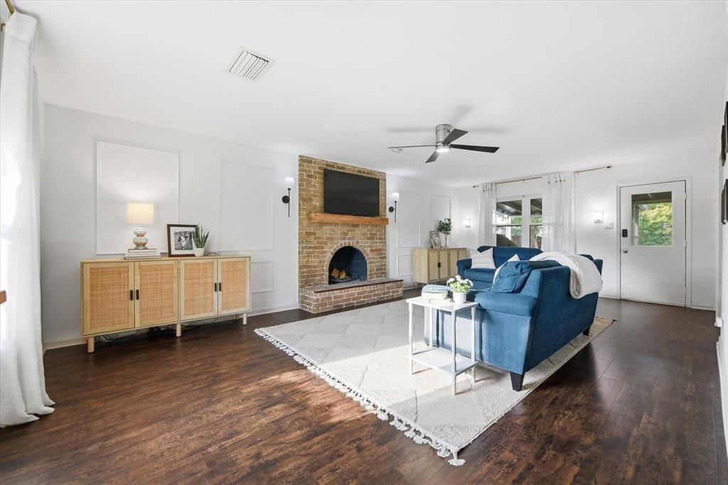 Beautiful home located in the highly sought-after Green Valley Elementary zone, showcasing timeless elegance and traditional charm throughout. The entire first floor features dark wood-like flooring and is filled with an abundance of natural light. The spacious living area offers a perfect view of the backyard and is enhanced with picture frame molding and a cozy wood-burning fireplace. The dining room is both functional and charming, complete with built-in benches and shelving. The kitchen is sleek and stylish, featuring a gas range, stainless steel appliances, and a walk-in pantry. A versatile bonus room on the main level can easily serve as a playroom, office, or formal dining space. Upstairs, the primary suite is a true retreat with picture frame molding, wood-like flooring, a walk-in closet, and a beautifully designed, traditional-style bathroom. Three additional generously sized bedrooms and a full bath complete the second floor. Step outside to a huge backyard designed for entertaining, featuring a covered patio, pool, pergola, and fire pit. The pool also includes a custom cover and safety fence for added peace of mind.