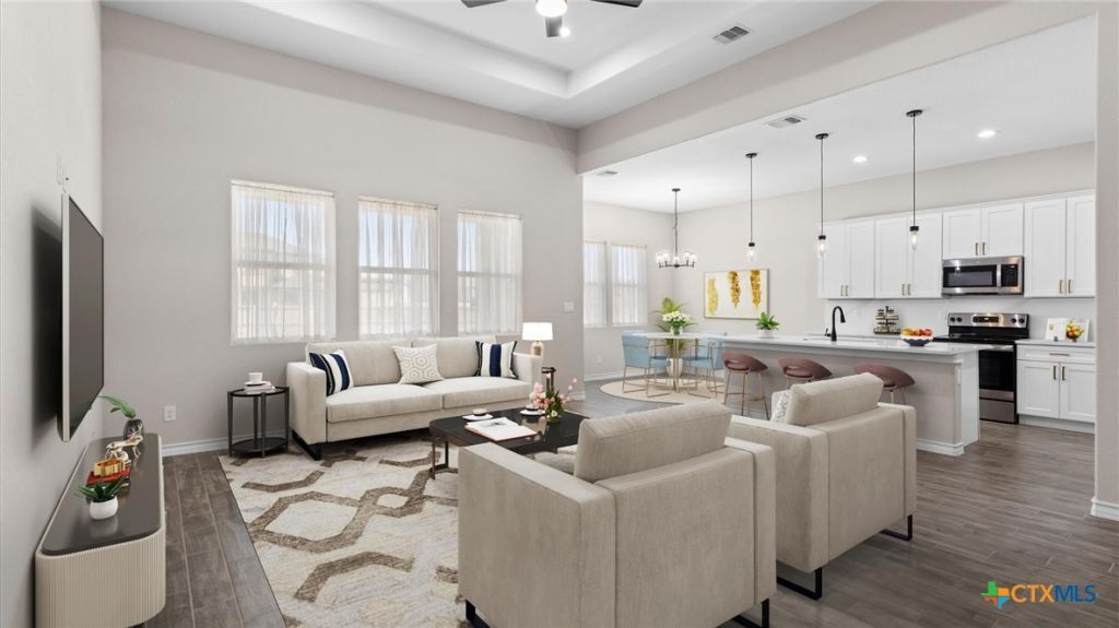 Welcome to modern living with space, style, and freedom-and NO HOA! Built in 2023, this stunning contemporary home offers almost 2000 square feet of thoughtfully designed living space with 4 bedrooms and 3 full bathrooms. Step inside to a light-filled, open layout featuring wood-look tile flooring and a bright, modern kitchen complete with white cabinetry, quartz countertops, and Black & stainless steel appliances-perfect for both everyday living and entertaining. The oversized primary suite is a true retreat, showcasing a spa-like walk-in shower with a pebble floor and beautifully tiled walls. Enjoy outdoor living on the covered patio overlooking a spacious 0.25-acre lot. The versatile 4th bedroom makes an ideal home office or study. Located just minutes from shopping, dining, and entertainment at The Forum, with easy access to I-35, Loop 1604, and Randolph AFB, this home offers both convenience and comfort. Don't miss your chance-schedule your private showing today!