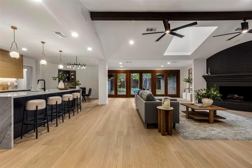 Architectural Lifestyle Property. Set beneath a canopy of mature trees on a quiet cul-de-sac, this .32-acre retreat offers a rare sense of privacy, scale, serenity. Thoughtfully reimagined (2025), the home blends original character with a turnkey experience: 2 primary suites. Office. 3-car garage. Rare floor plan with 4 private bedrooms, each with its own ensuite bath, plus a guest powder bath.A soaring vaulted ceiling anchors the main living space, framed by a wall of glass doors and a skylight that fills the home with natural light. European oak flooring and Level 4 smooth drywall finishes create a refined, gallery-like backdrop.The kitchen is both functional and striking, centered around a generous waterfall-edge island. A Thermador 48-inch range+griddle, Elica vent hood, dual ovens, and Bellmont European cabinetry deliver a true chef’s experience. A sunlit dining nook and stately dining room invite both casual mornings & elevated gatherings.Primary Suite 1 offers a quiet reading nook+private patio - an ideal setting for morning coffee. The spa-inspired bath features bold geometric tilework and a stunning sculptural soaking tub.A secluded Primary Suite 2 provides privacy for guests or multigenerational living, with an adjacent flex space ideal for an office or additional living.Outdoors, the backyard unfolds into layered terraces beneath crepe myrtles for dining, lounging, and gathering. A built-in grill and soaking spa—with the option to convert to a heated hot tub—complete the experience.Major system improvements bring peace of mind: HVAC (Armstrong 5-ton 16 SEER), PEX supply lines, PVC waste lines, Navien tankless water heater, R-38 insulation, improved drainage+catch basins, gutters with guards. Foundation approved by structural engineer.A quiet retreat where architecture, light, & landscape converge just 15 mins from downtown Dallas. Near Moss Haven & Merriman Park Elementary; buyer to independently verify transfer eligibility.